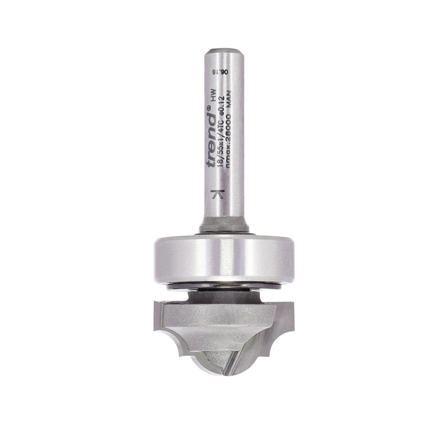 Shank mounted bearing follows template mounted on board surface.