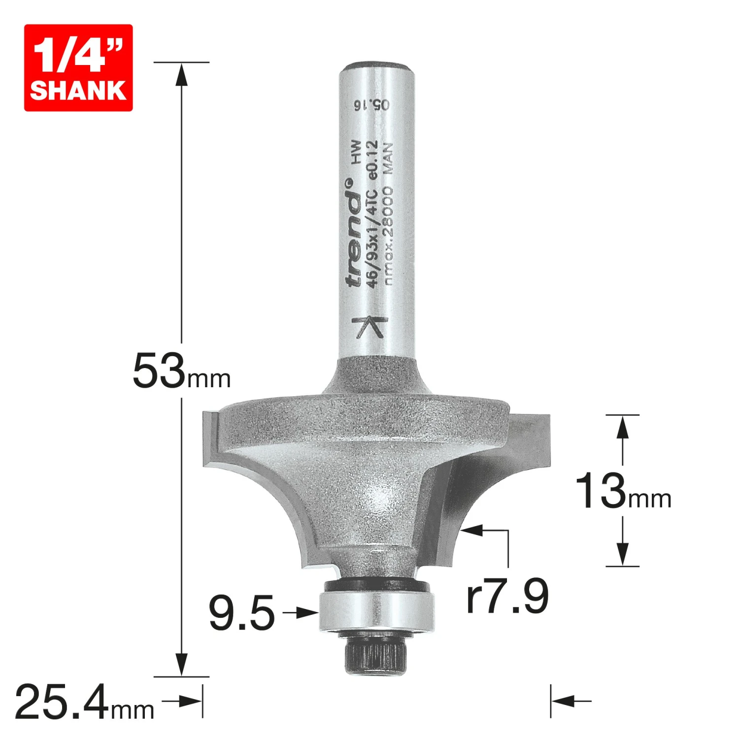 - Use the larger bearing for a round-over.