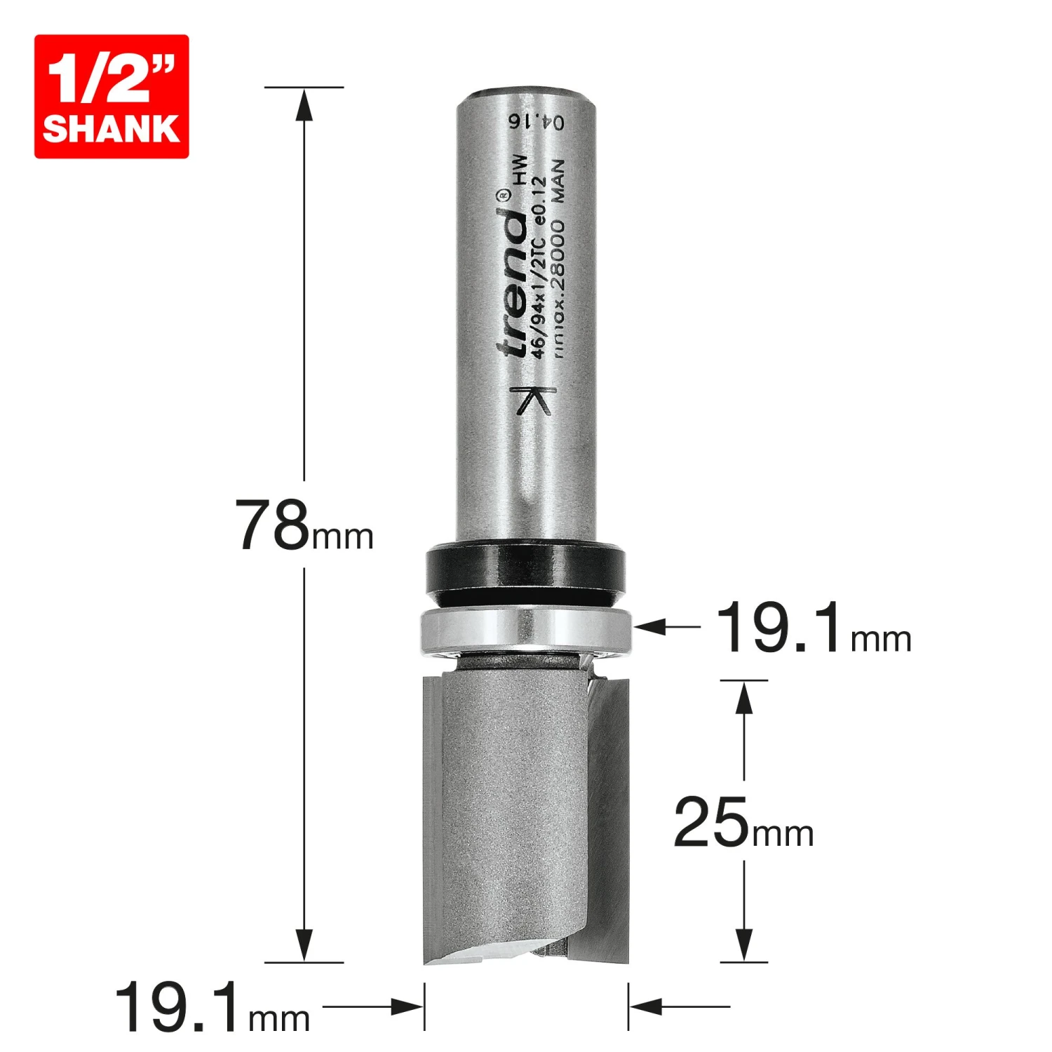 Trend Professional 1/2in shank bearing guided trimming cutter – 19.1mm diameter for laminate and template work