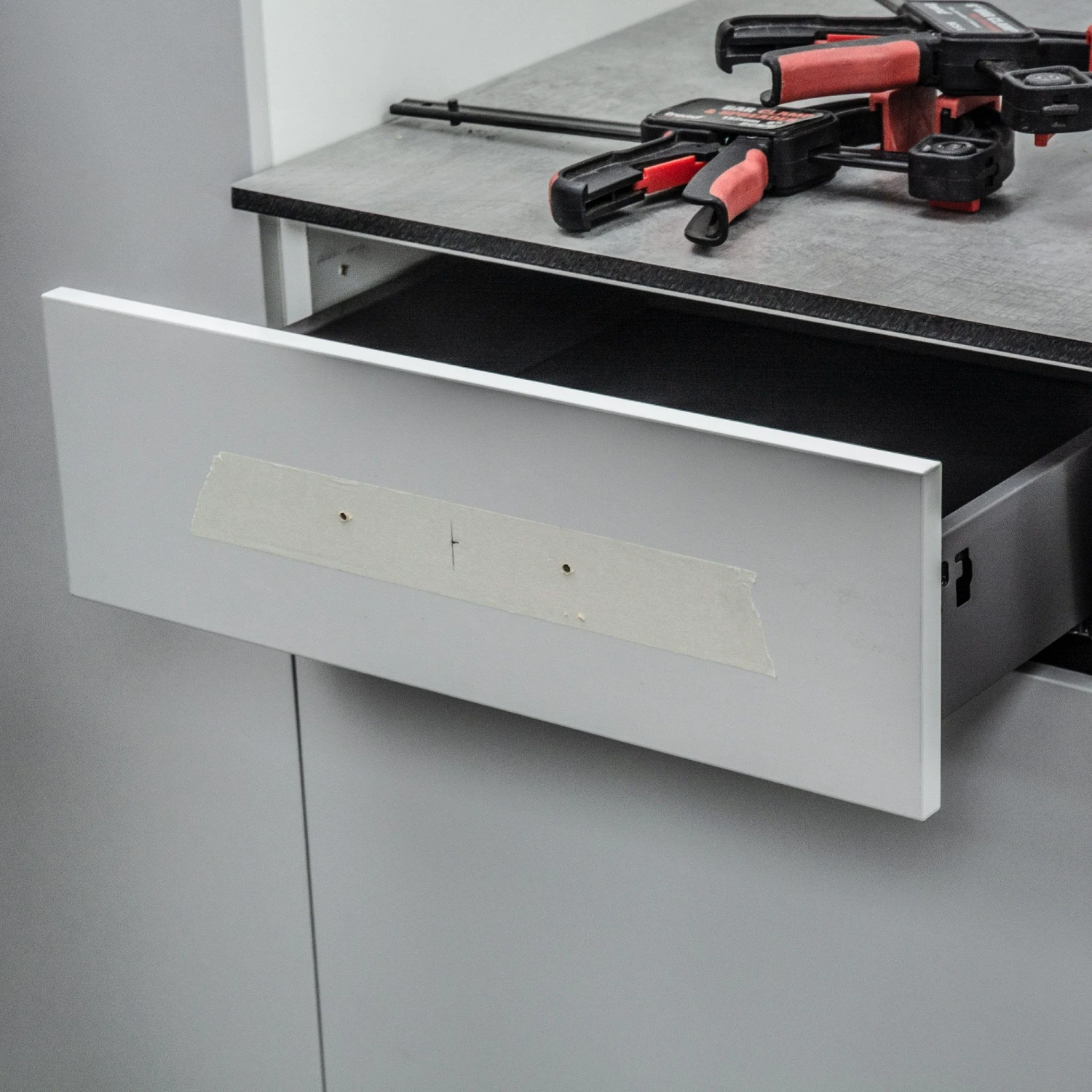 - Sliding Edge Guide accommodates door and drawer sizes up to 600mm wide.