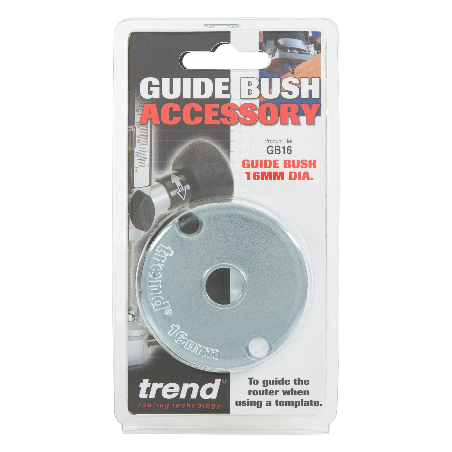 Guide bush guides the router when using a template.