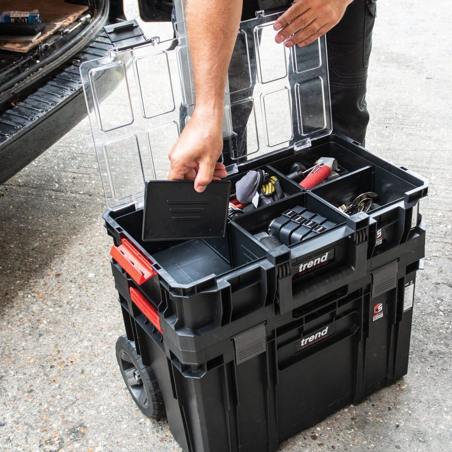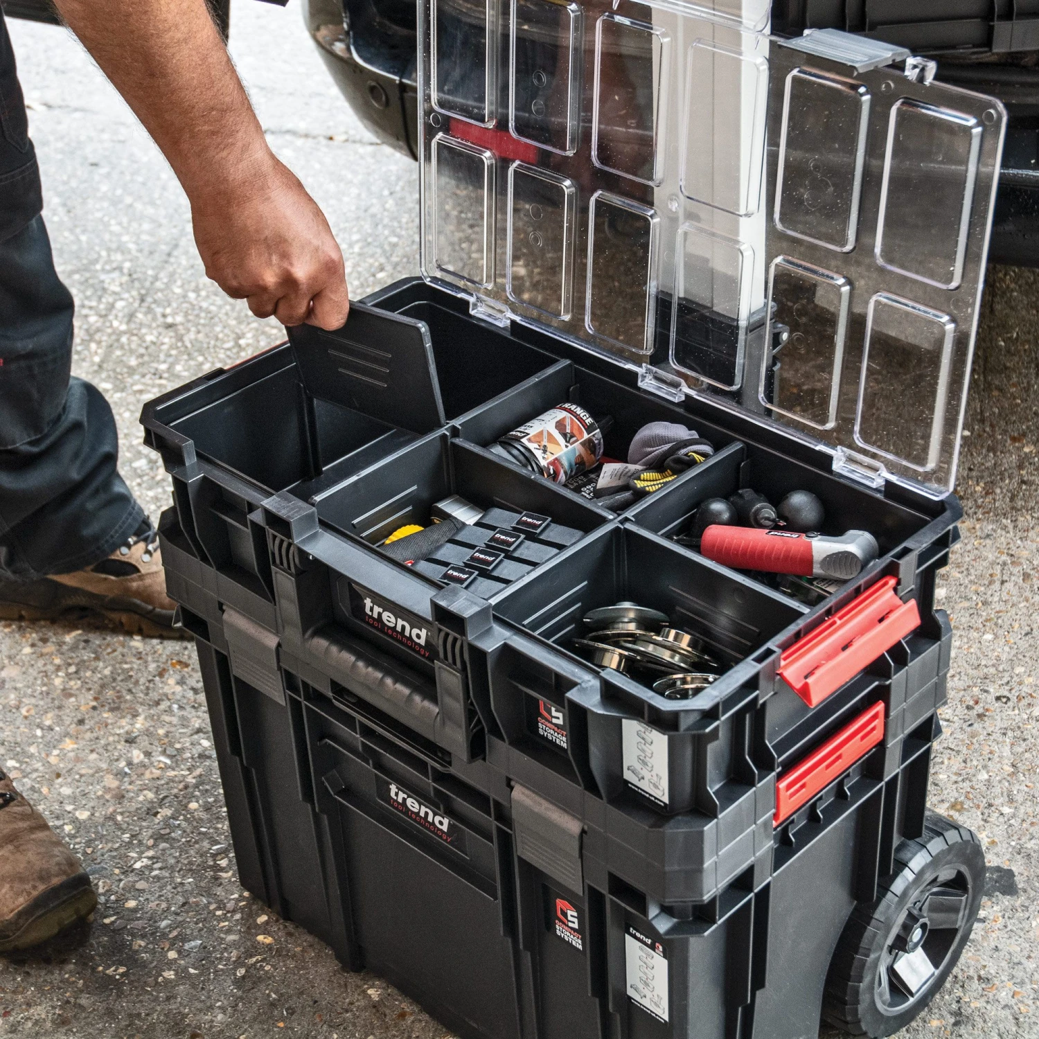 - Box holds up to 19kg of tools