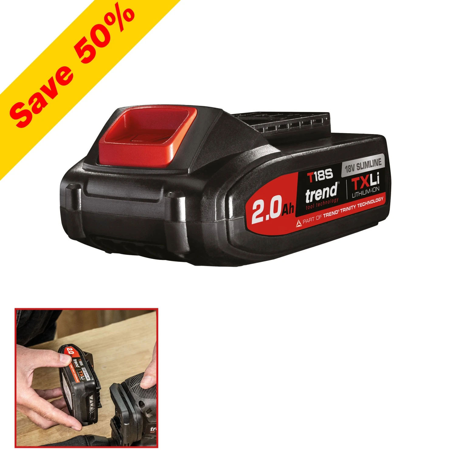 - Trend Tool Connection: Lock button for secure retention, compatible with all Trend 18v Lithium Ion battery tools