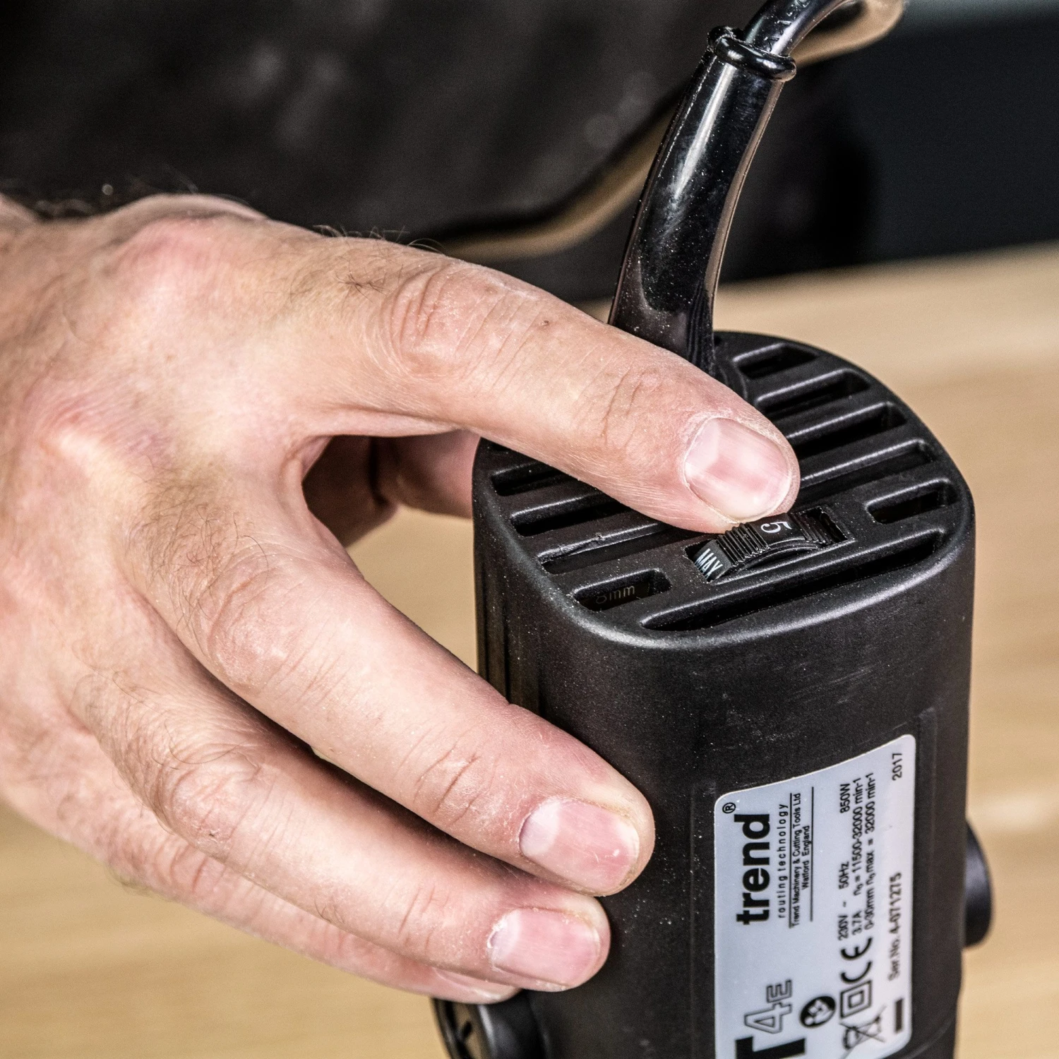 Lightweight, compact plunge router, with a removable motor body. Ideally suited to overhead working and perfect for hinge recess cutting, timber profiling and hand carving.