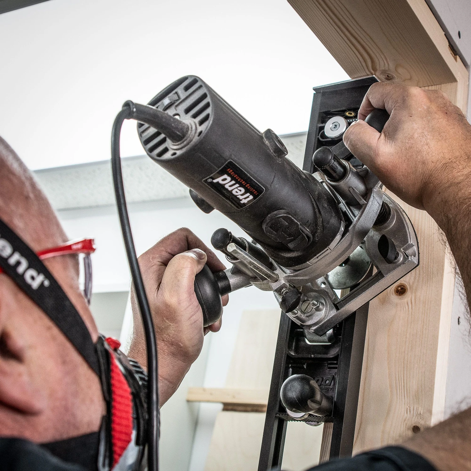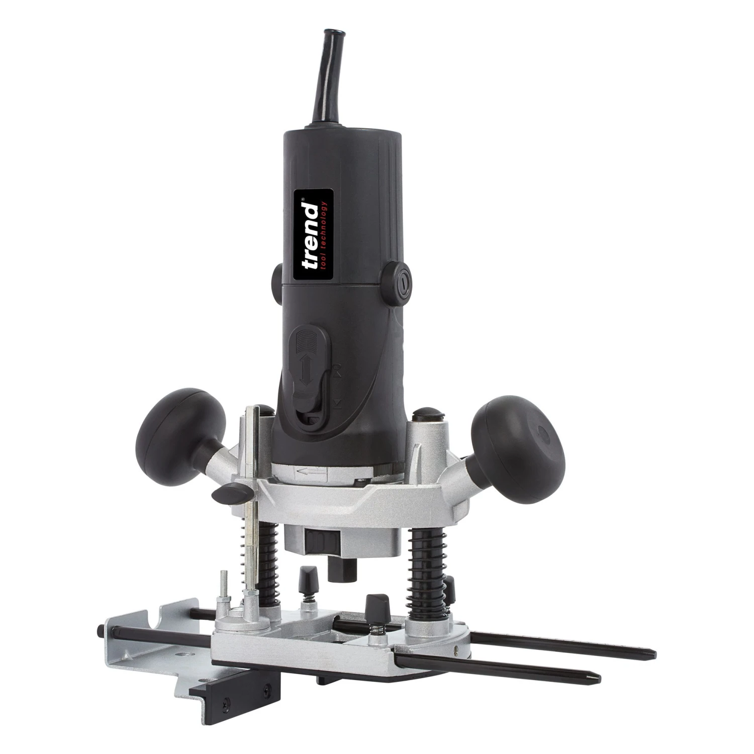 Lightweight, compact plunge router, with a removeable motor body. Ideally suited to overhead working and perfect for hinge recess cutting, timber profiling and hand carving.