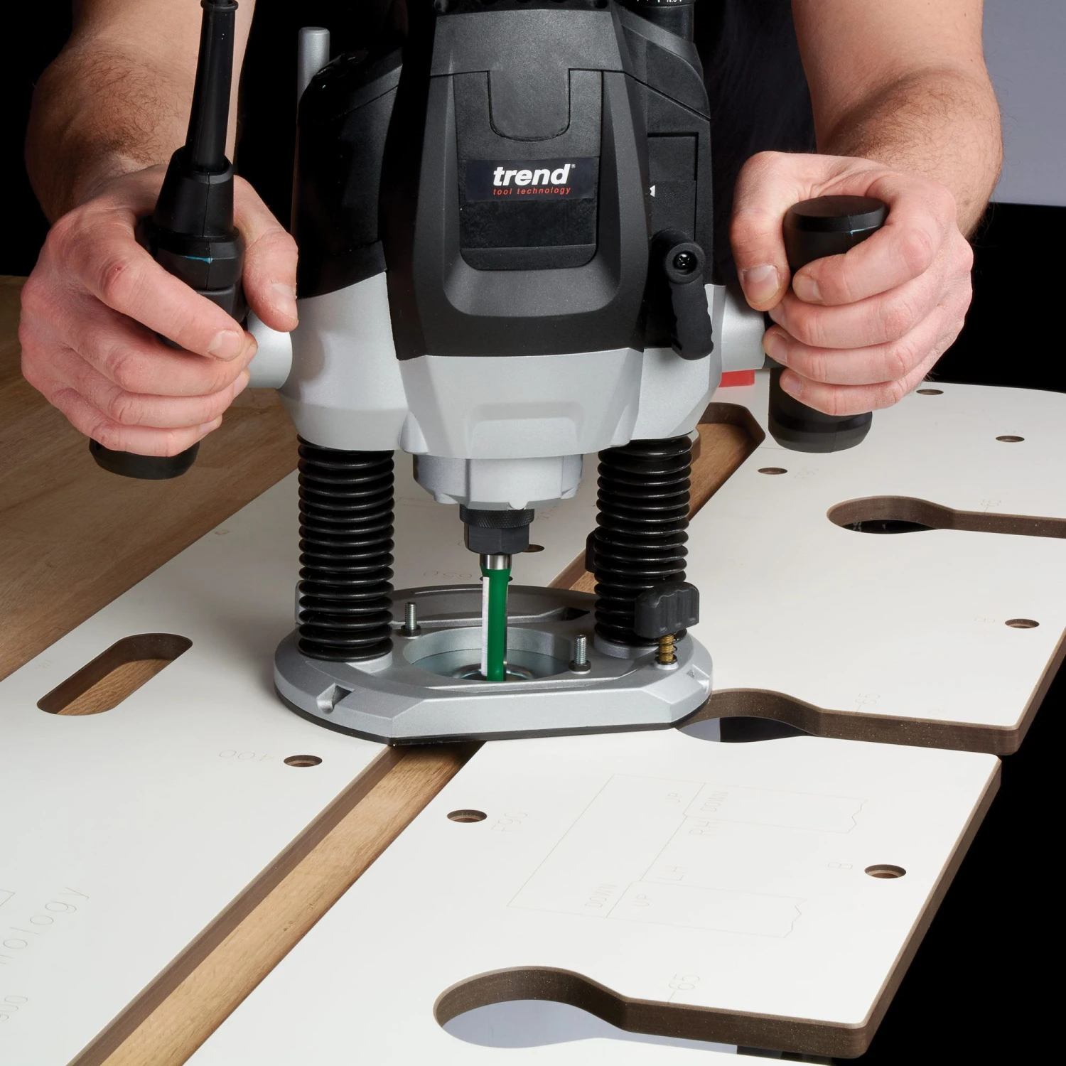 Trade-focused plunge router with advanced safety features, engineered to deliver reliable, fast, accurate cuts. Perfect for kitchen fitting, worktop joints and timber profiling.