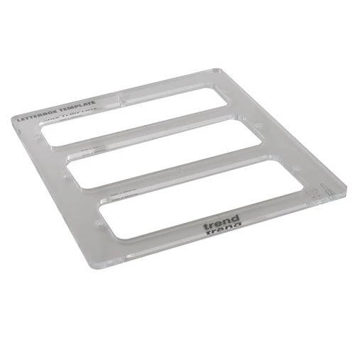 Clear plastic template for use with any plunge router to accurately fit three sizes of letter box plates.
